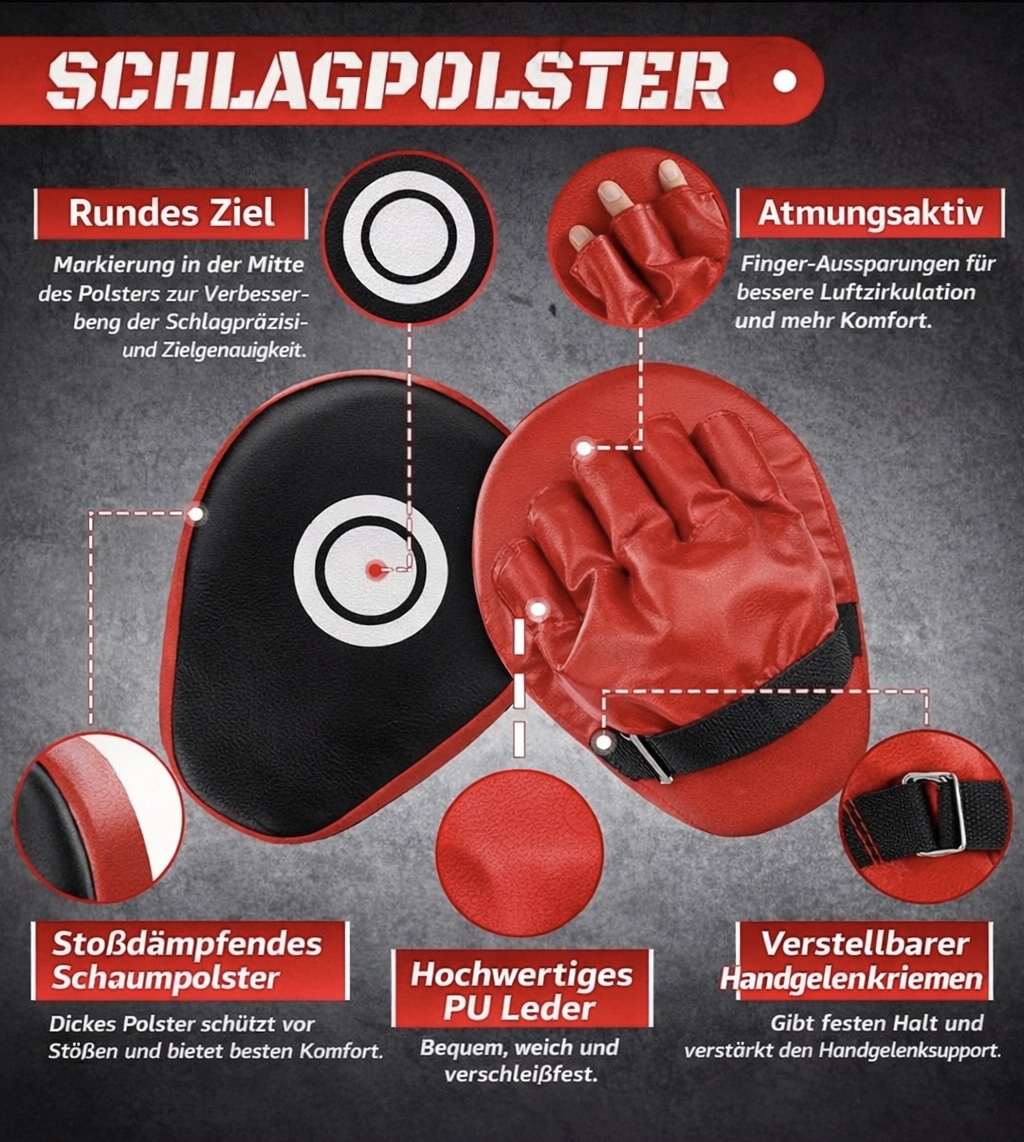 Mehr Präzision. Mehr Geschwindigkeit. Mehr Kontrolle. Mit dem Alpas Boxpratzen Set holst du dir professionelles Trainingsequipment direkt nach Haue oder ins Studio. Die speziell entwickelte Mehrlagenpolsterung schützt zuverlässig vor Schlagbelastung und ermöglicht intensive Trainingseinheiten ohne Kompromisse. Dank ergonomischem Design sitzen die Pratzen satbil und bequem an der Hand. Selbst schnelle Kombinationen und harte Treffer werden sicher abgefedert – für maximale Trainingsleistung bei minimaler Belastung. Ob Techniktraining, Schlagkraft-Workout oder Reaktionsübungen – diese Pratzen bringen dein Training auf das nächste Level.